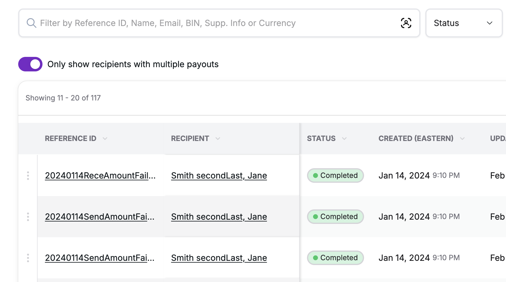 - Filter based on the date a payout was updated